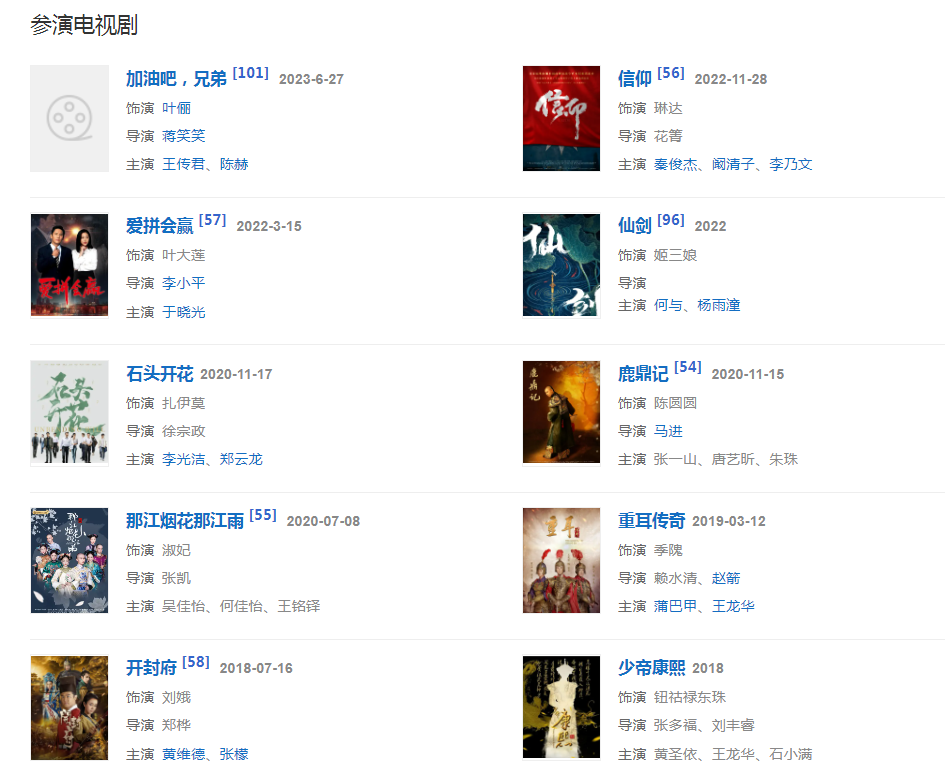2022315日,與于曉光合作主演的電視劇《愛拼會贏》開播,在劇中飾演女企業(yè)家代表葉大蓮。