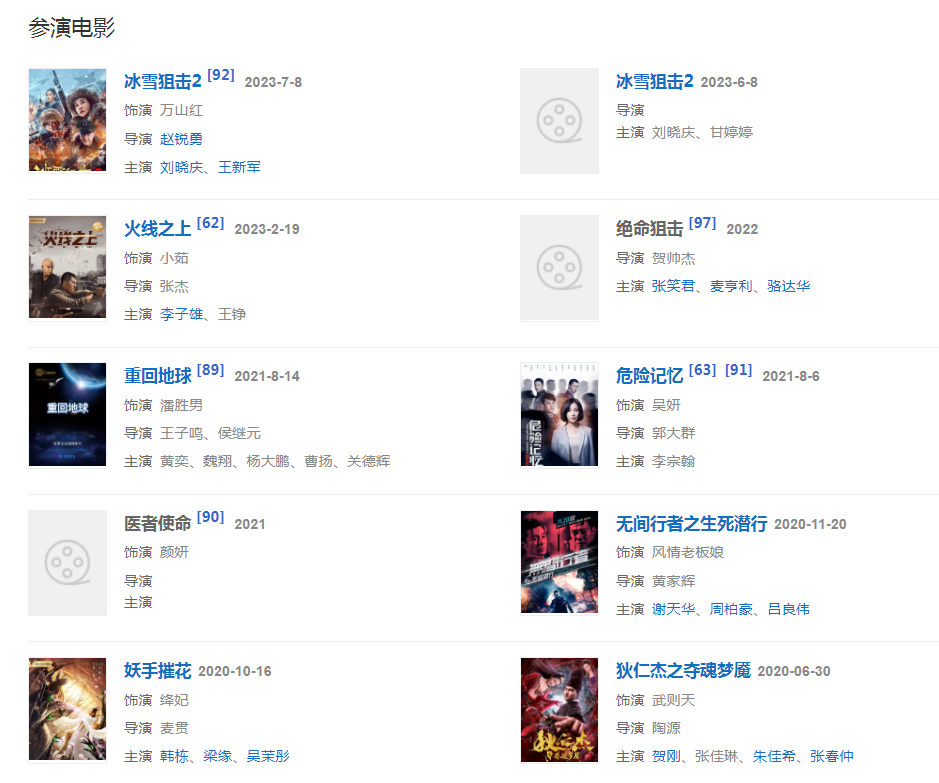 202186日,主演電影《危險(xiǎn)記憶》上映;814日,甘婷婷主演的電影《重回地球》上映。