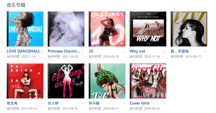 2010年,推出首張個(gè)人音樂專輯《壞天使》;同年,獲得第3屆音樂風(fēng)云榜最佳舞臺(tái)魅力新人獎(jiǎng)。2011年,推出第2張個(gè)人音樂唱片《女人幫》。