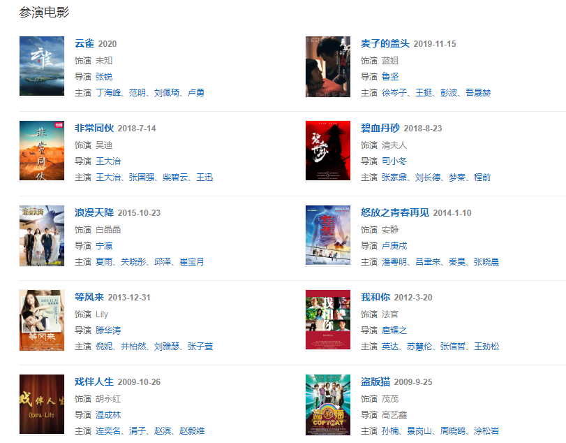 2013年在電影《怒放2013》中飾演安靜一角,同年在《等風(fēng)來》中飾演女主編Lily