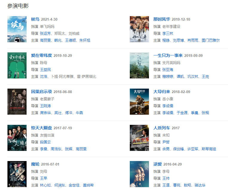 2013年友情客串動作懸疑電影 《奪樽》  。20182月參加春晚節(jié)目的錄制