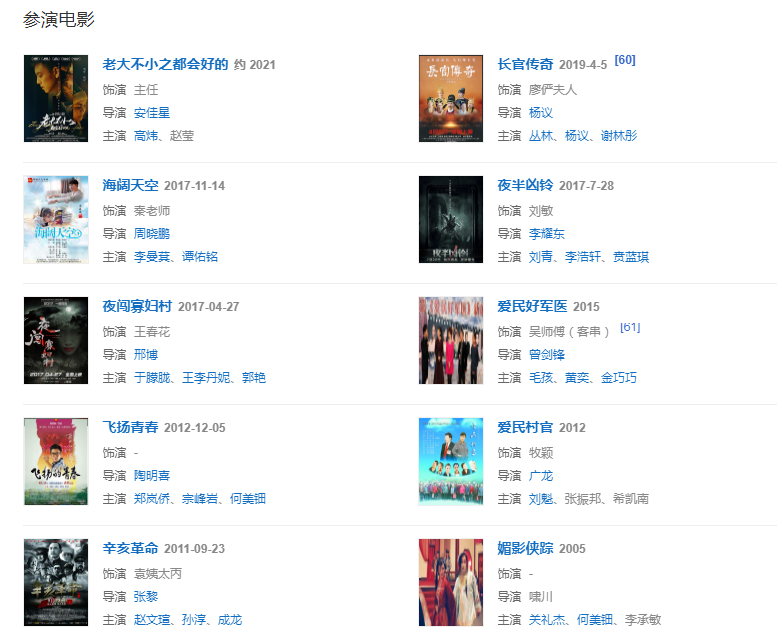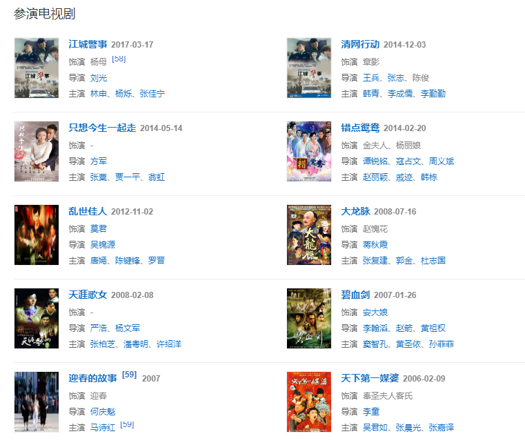 代表作品:雪山飛狐、梁紅玉、天龍八部、大唐歌飛、廚子當(dāng)官、碧血?jiǎng)?、錯(cuò)點(diǎn)鴛鴦、清網(wǎng)行動(dòng)、愛民好軍醫(yī)、長官傳奇