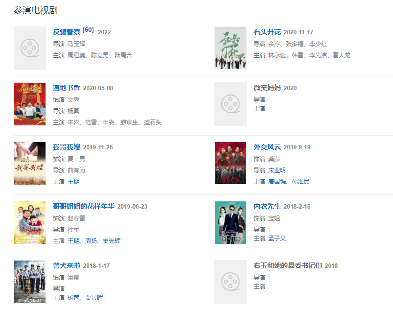 20196月,與王挺等合作主演的都市情感劇《哥哥姐姐的花樣年華》播出  。919日,主演的歷史、外交題材電視劇《外交風(fēng)云》播出  。