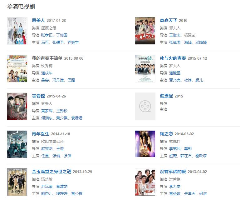 代表作品:共和國(guó)往事、孝莊秘史、金玉滿堂