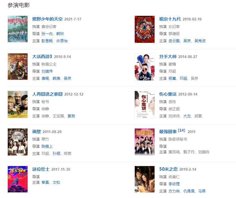 代表作品:人再囧途之泰囧、最好的我們、分手大師、傷心童話、畫壁