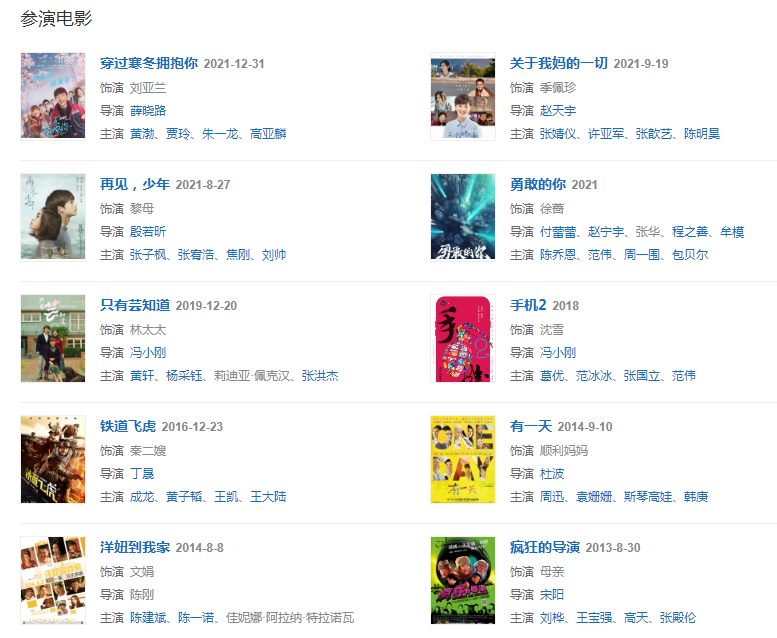 2020913日,參與的大型情感戶外真人秀《走在回家的路上》在央視綜藝頻道(CCTV-3)播出  。202128日,與李雪健合作主演的全面建成小康社會(huì)網(wǎng)絡(luò)劇《約定》播出; 827日,主演的電影《再見,少年》上映;919日,徐帆與張婧儀領(lǐng)銜主演的電影《關(guān)于我媽的一切》上映;915日消息,第八屆“文榮獎(jiǎng)”評(píng)委會(huì)陣容名單出爐,徐帆入選評(píng)委會(huì)評(píng)委;1231日,主演的電影《穿過寒冬擁抱你》上映;參演電視劇《半暖時(shí)光》;參演電視劇《北轍南轅》。