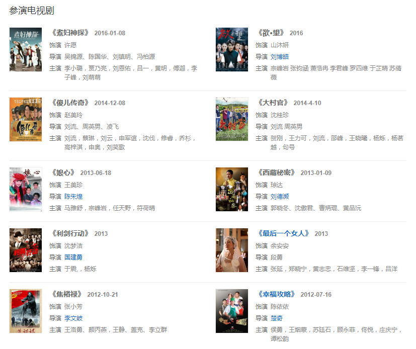 2014年,在青春勵志劇《大村官》中,飾演樸實(shí)善良的農(nóng)村媳婦沈桂珍。