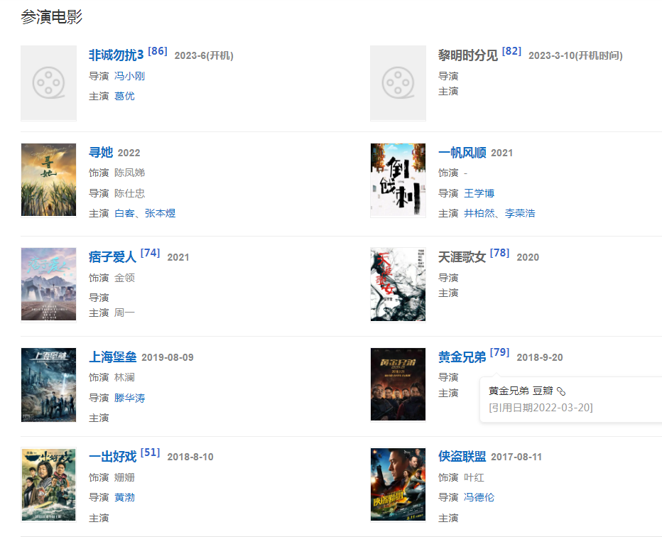 2013年,主演古裝神話電影《西游·降魔篇》,由此獲第50屆臺灣電影金馬獎最佳女主角提名。