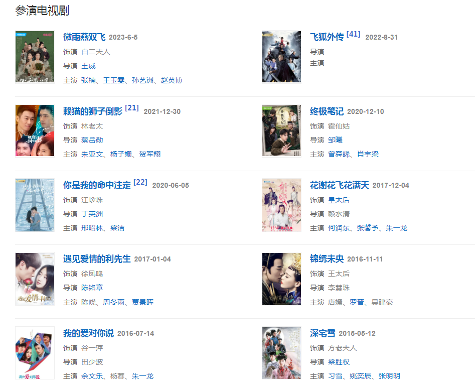 2023年6月5日,參演電視劇《微雨燕雙飛》播出。