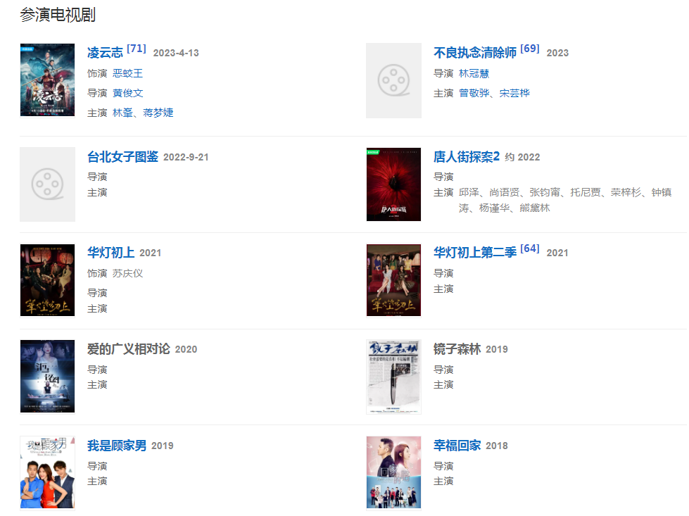 2015年,主演臺(tái)灣年代劇《一把青》獲得金鐘獎(jiǎng)女主角提名 。