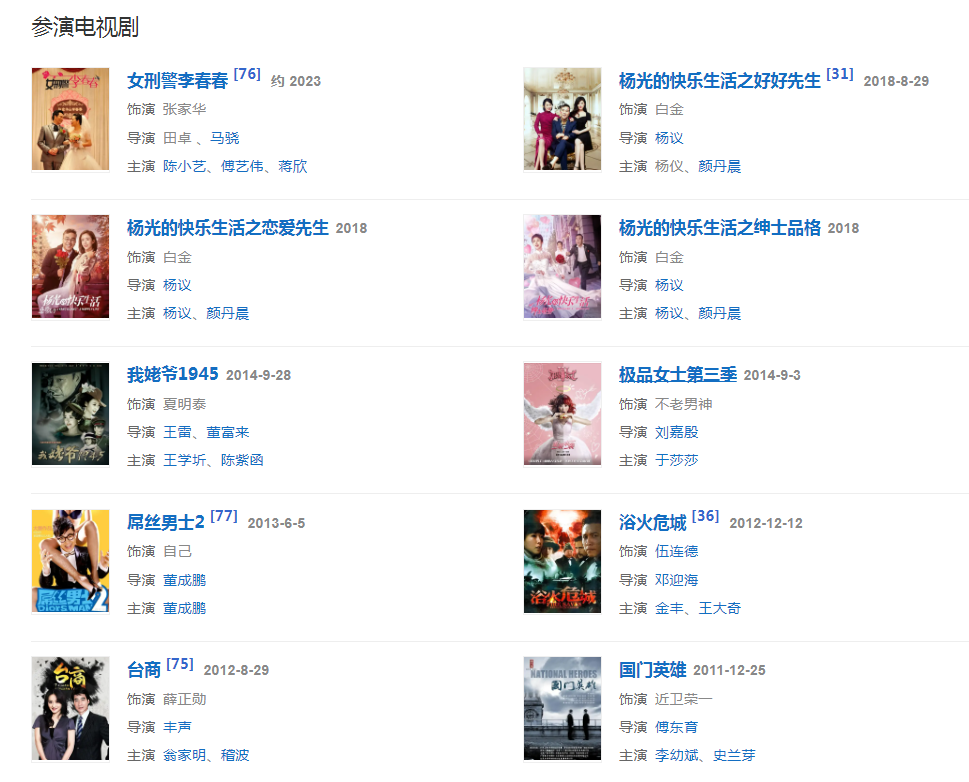 2016年4月,主演電視劇《楊光那些事》 ;同年,主演電影《主播36式》。