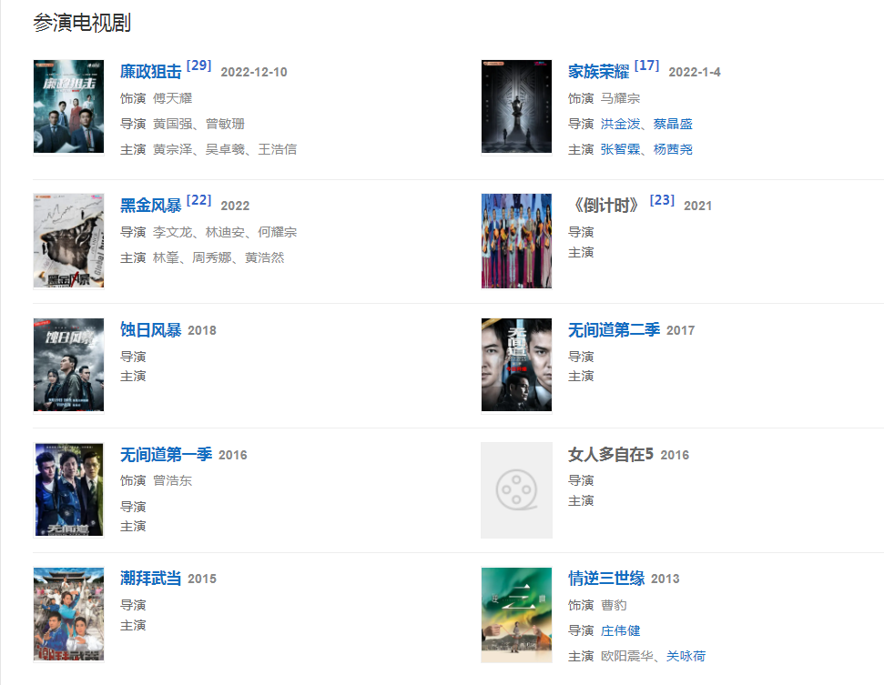 2023年2月20日,參演的懸疑劇《廉政狙擊》在香港翡翠臺播出。