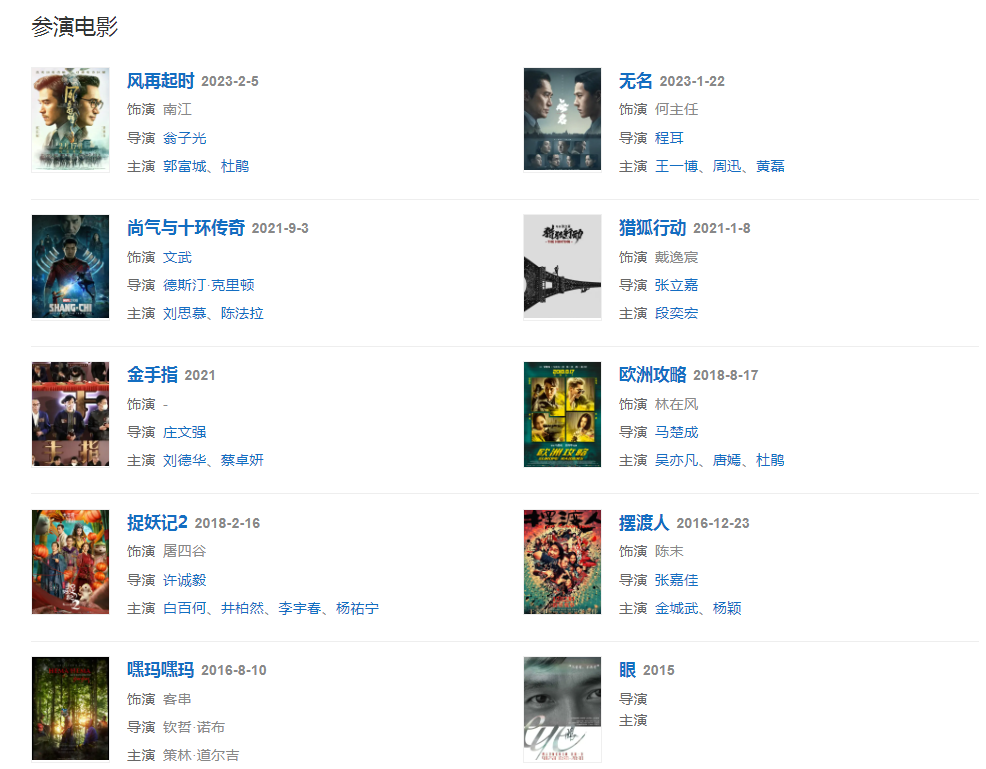 2015年主演的《一代宗師》3D版上映;同年接拍由王家衛(wèi)監(jiān)制的電影《擺渡人》,并獲得法國文化部頒授的“法國藝術(shù)與文學軍官勛章” 。