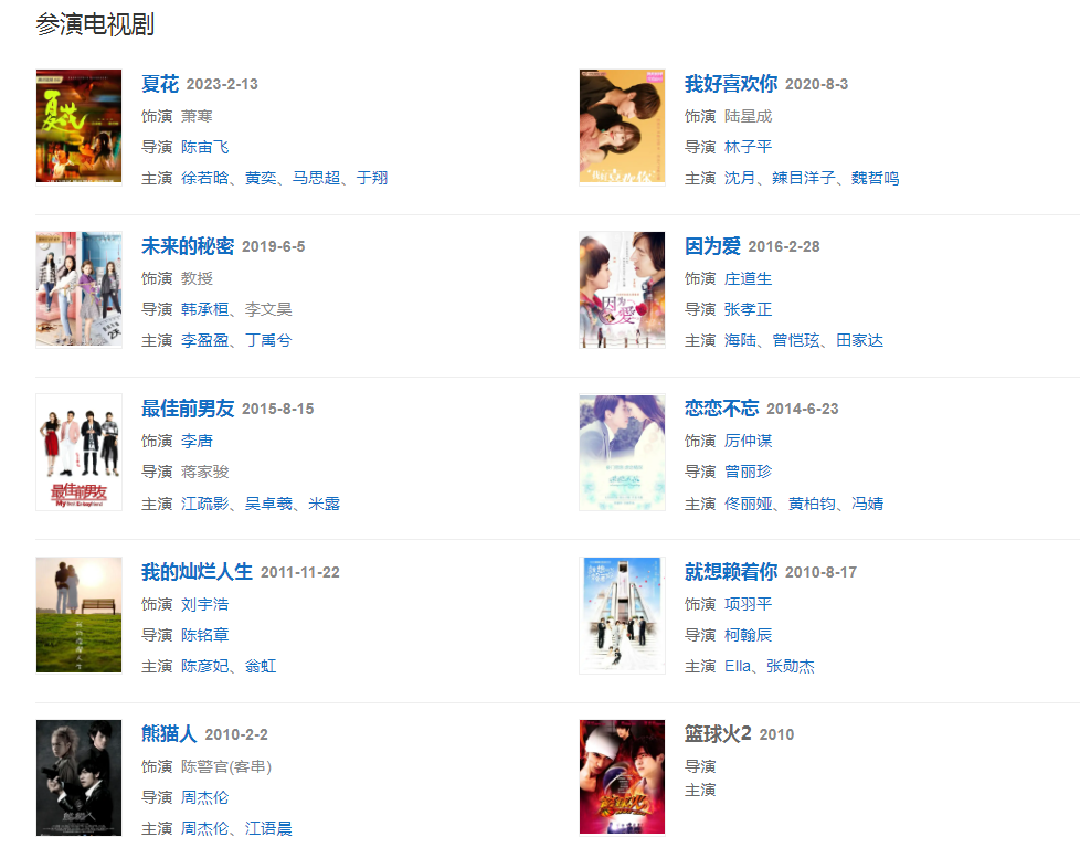 代表作品:流星花園、白色巨塔、心星的淚光、就想賴著你、籃球火、戀戀不忘、最佳前男友、我的燦爛人生、我是真的真的很愛你